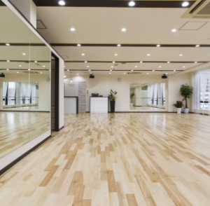 見晴らしの良い大きな窓からは、六甲山脈や青い空が見えて晴れやかな気持ちで踊れます。