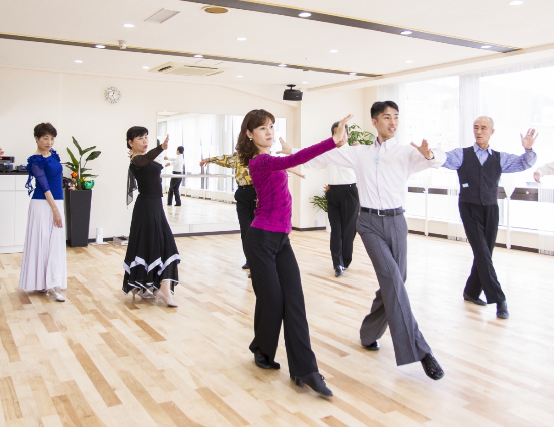 団体レッスンでは、初級から上級、パーティーダンスや競技向けクラスなど、曜日別に様々なレッスン内容を行っています。受講されている方も楽しく気さくなメンバーばかりです。一緒に楽しく汗を流しませんか?あなたの参加を皆でお待ちしています。